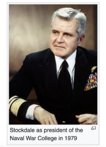 Following his retirement from the Navy in 1979 Stockdale became an author and an academic. In 1984 Stockdale and his wife Sybil co-authored In Love and War which tells the story of their lives during the Vietnam years in alternating chapters. Stockdale was a Senior Fellow at The Hoover Institution located on the campus of Stanford University. He wrote and lectured on leadership, and stoic philosophy with an emphasis of the ancient stoic Epictetus. You can find works written by Admiral Stockdale here: https://www.amazon.com/stores/author/B001K8WHBQ